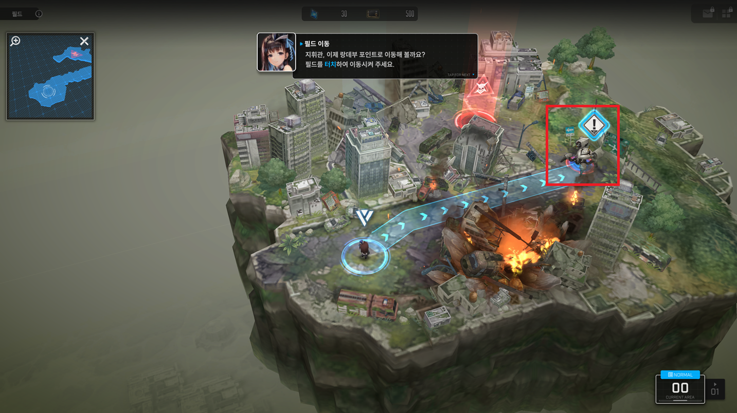 이후 SD 캐릭터를 마우스로 클릭하여 필드 이동을 해야합니다.