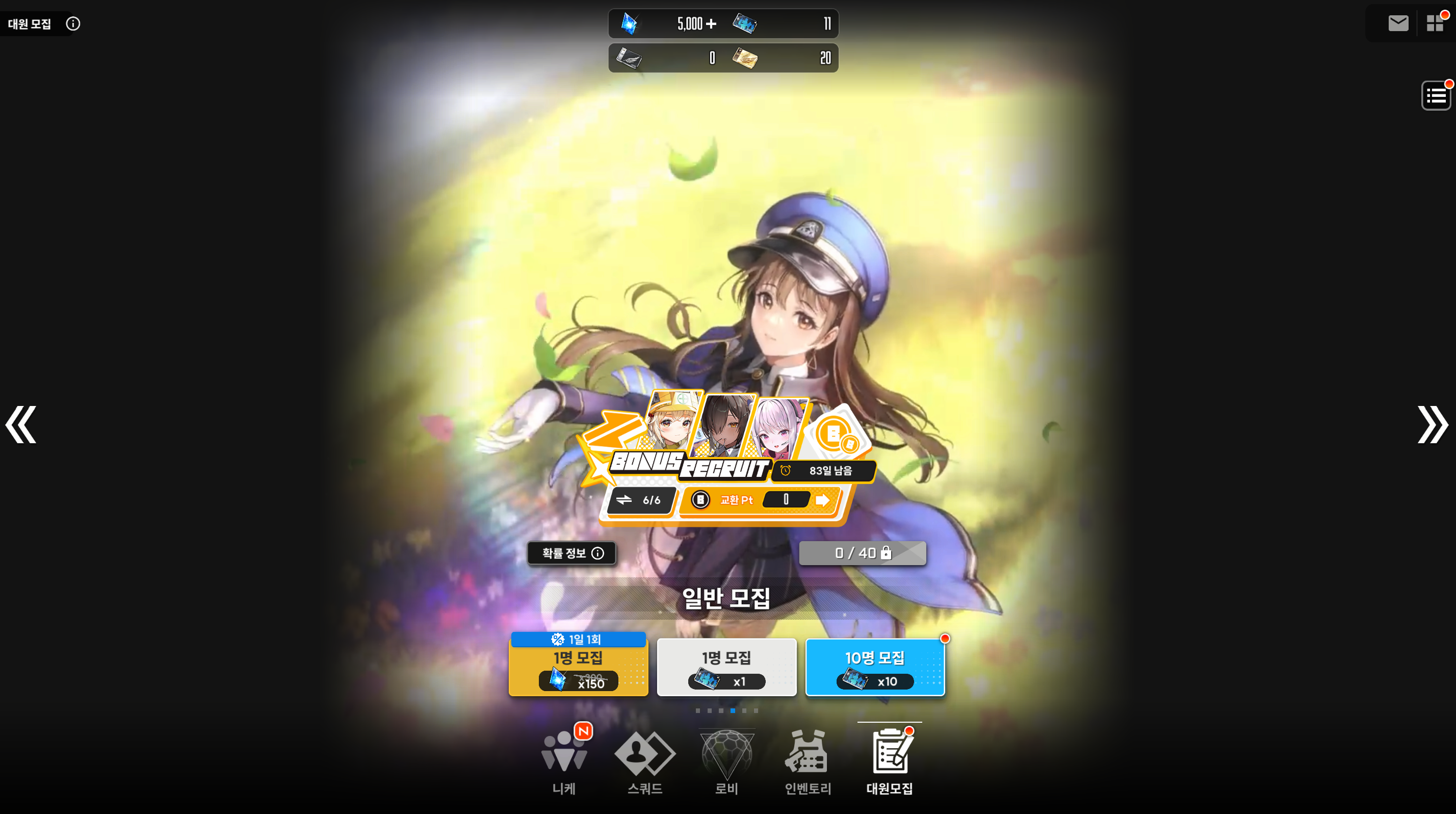 이제 모든 것이 완료되었습니다. 대원 모집을 클릭하여 대망의 가챠를 진행할 시간입니다.