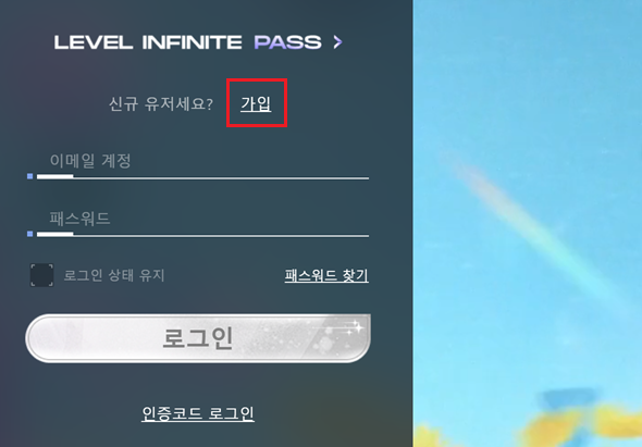 이제 니케 PC 전용 클라이언트에서 가입을 클릭합니다.